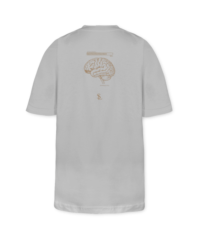 O Processo de Renovação. O mundo tenta ditar o ritmo, mas o nosso sistema está sendo atualizado por outra Fonte. A estampa Mente Livre é um convite visual à metanoia: o processo de desconectar dos padrões terrenos para se alinhar completamente ao propósito do Reino. Com um símbolo de loading estilizado e traços minimalistas, essa peça une a estética tecnológica a uma verdade eterna. Não é apenas uma camiseta; é um manifesto de quem decidiu viver de forma intencional. Modelagem: Camiseta Infantil. Mensagem: Desprogramado do mundo, conectado com o Reino.