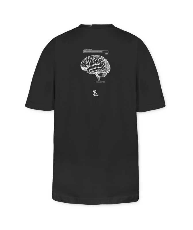 O Processo de Renovação. O mundo tenta ditar o ritmo, mas o nosso sistema está sendo atualizado por outra Fonte. A estampa Mente Livre é um convite visual à metanoia: o processo de desconectar dos padrões terrenos para se alinhar completamente ao propósito do Reino. Com um símbolo de loading estilizado e traços minimalistas, essa peça une a estética tecnológica a uma verdade eterna. Não é apenas uma camiseta; é um manifesto de quem decidiu viver de forma intencional. Modelagem: Camiseta Infantil. Mensagem: Desprogramado do mundo, conectado com o Reino.