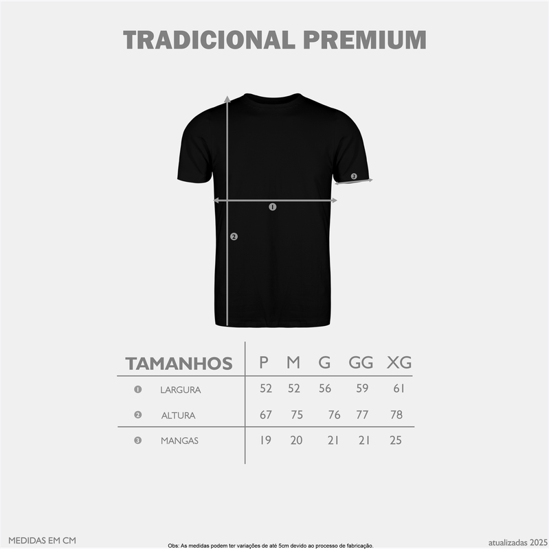 Camiseta fabricada com cortes retos e tecido de meia malha, fio 30.1, penteado, com 100% algodão e gramatura 165 gramas. Essa malha premium unissex, se encaixa perfeitamente em qualquer biotipo, possui gola com reforço, mangas curtas e gola rebatida. Ideal para pessoas que se preocupam com os mínimos detalhes.